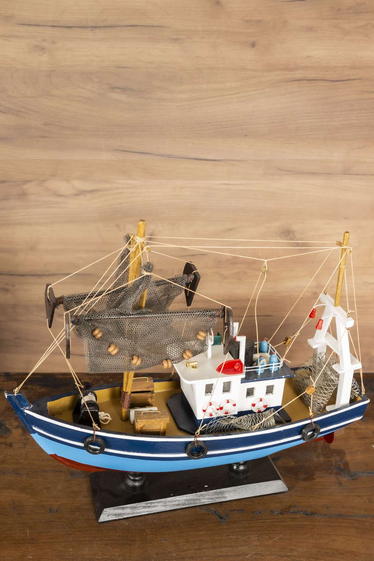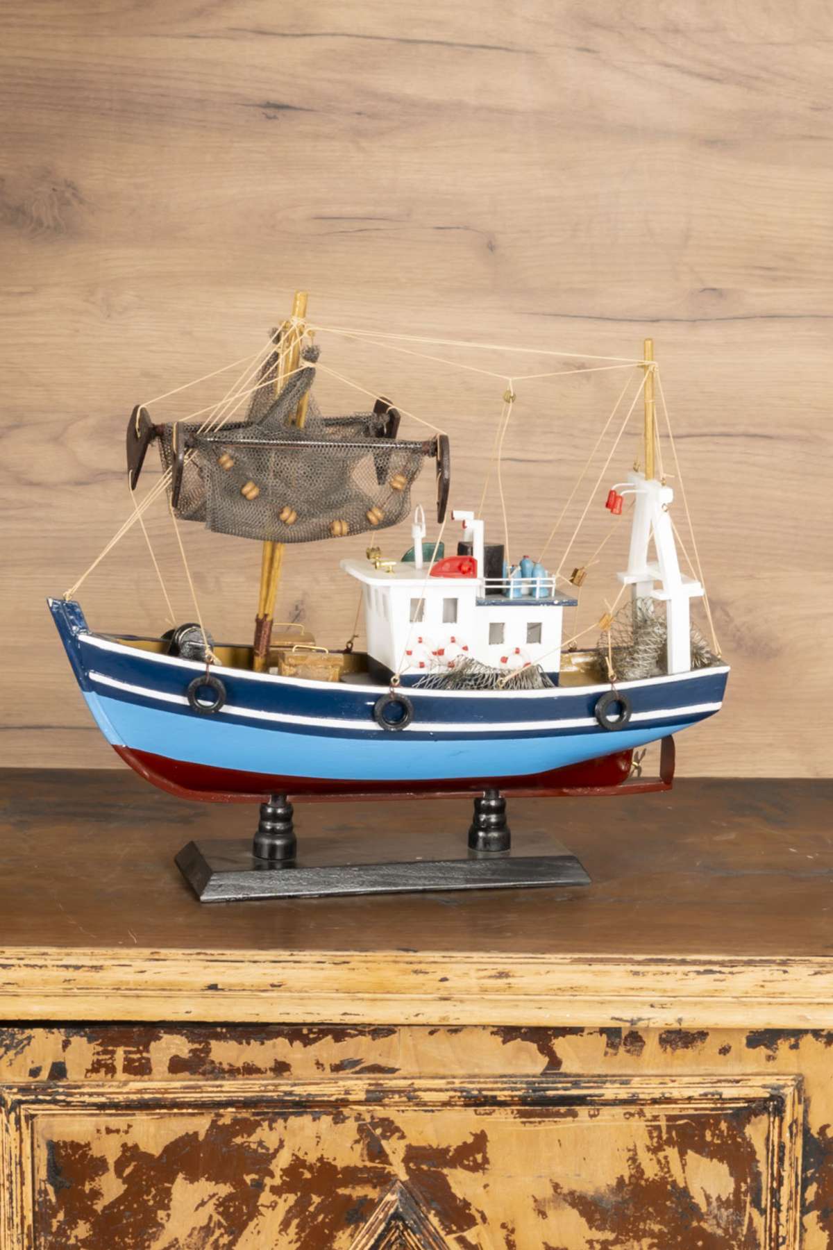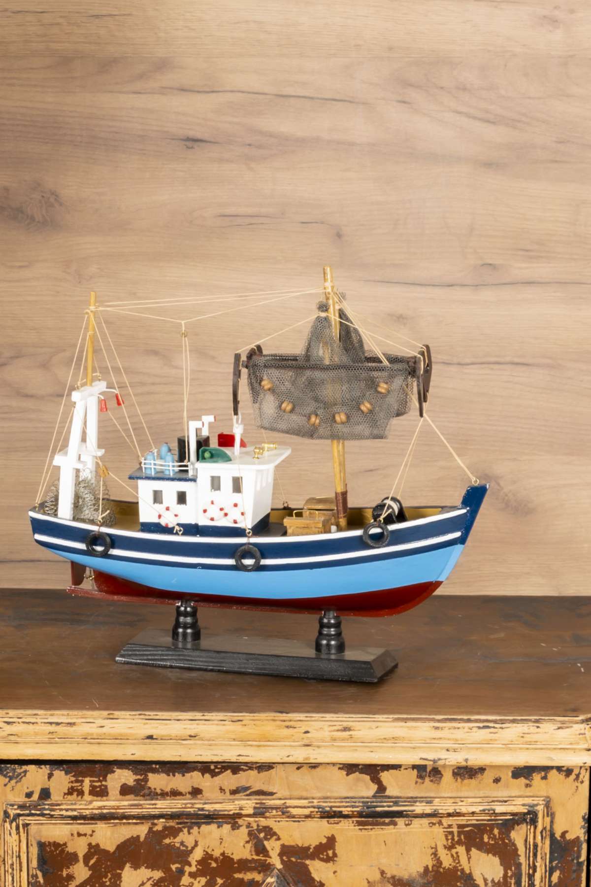 Wooden Blue Net Fishing Boat Model