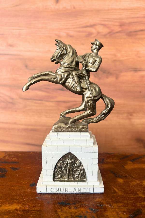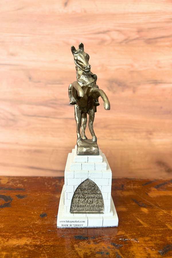 Atatürk Onur Anıtı Biblosu ile tarih ve gururu evinize taşıyın! Samsun'da yer alan ve Türkiye Cumhuriyeti'nin kurucusu Mustafa Kemal Atatürk’ün onuruna dikilen bu anıtın küçük bir replikası olan biblo, detaylı işçiliği ve şık duruşuyla dikkat çekiyor. Şahlanan at üstündeki Atatürk figürü, azmin, cesaretin ve özgürlüğe olan bağlılığın simgesi olarak bulunduğu her ortamda gururla sergilenecek bir eserdir.