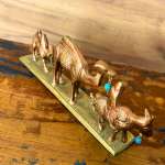 Bu büyüleyici Pirinç Deve Kervanı, ince el işçiliği ile şekillendirilmiş pirinç metalden yapılmış olup, dekorasyonunuza egzotik bir zarafet katıyor. Usta zanaatkarların elinden çıkan her detay, kervandaki develerin doğal görünümünü ve antik atmosferini yansıtıyor. Parlak pirinç malzemenin sağlamlığı ve zamansız estetiği ile uzun ömürlü olan bu kervan figürü, Orta Doğu ve Uzak Doğu kültürlerinin mistik yolculuklarını evinize taşıyor.