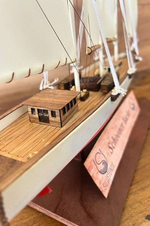 Schooner Yacht Maket, klasik yelkenli tekne estetiğini yaşam alanlarına taşımak isteyenler için özenle hazırlanmış, dekoratif değeri yüksek özel bir parçadır.