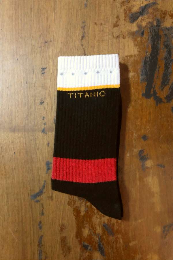 Tüm zamanların en ünlü gemisi Titanik, Su Üstünde sitesinde deniz tutkunlarına yönelik eşsiz hediye seçeneği olabilecek bir parça Titanik temalı çorap.