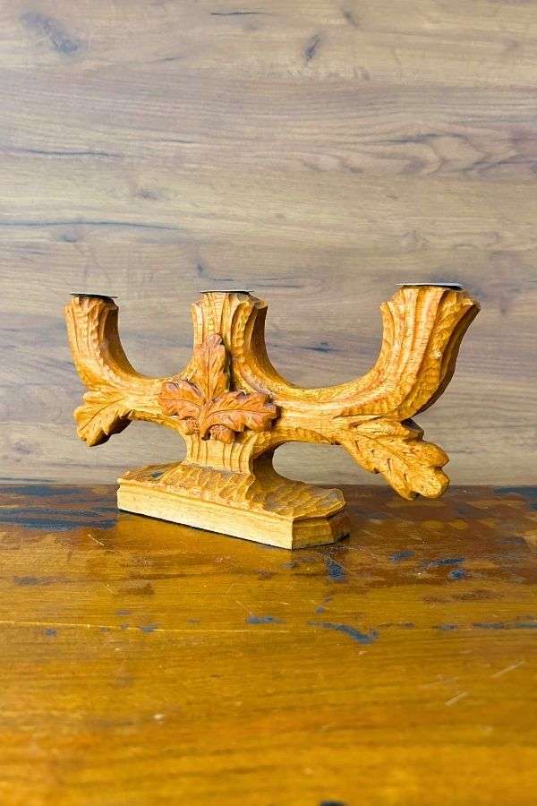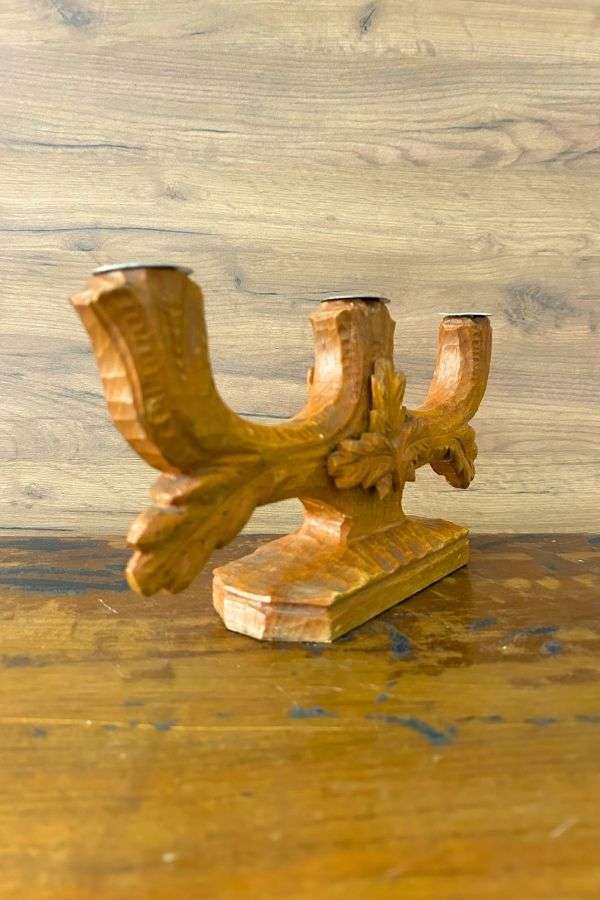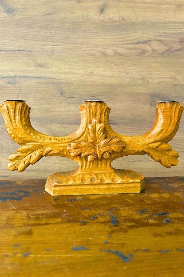 Vintage Ahşap Oyma Şamdan