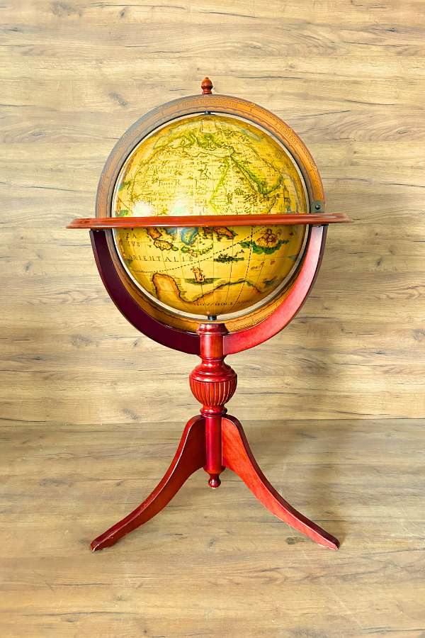 Dünya Haritası Tasarımı: Kürenin dış yüzeyinde yer alan antika dünya haritası tasarımı, ürüne tarihi ve coğrafi bir derinlik katar. Bu vintage tarz, her tür dekorasyonla uyum sağlar.