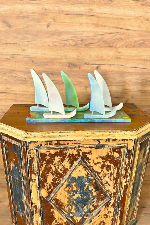 Deniz ve yelken tutkunlarının beğenisini kazanacak olan Yelkenliler Biblosu, evinizin dekorasyonuna şıklık ve ferahlık katacak benzersiz bir parça. Renkli yelkenleri ve modern tasarımı ile dikkat çeken bu biblo, her ortamda denizin huzur verici atmosferini yansıtıyor.